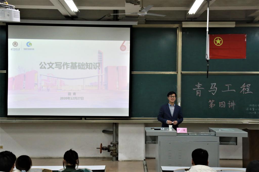 培训伊始,田青点明“公文离我们并不遥远,日常生活处处可见”这一观点,并简要说明公文写作培训的重要性。此次培训分为两个部分,一是公文简介,二是公文写作。培训期间,田青列举大量案例,深入浅出地将命令指导、明法传令、宣传教育、公务联系和依据凭证等概括为公文的六大作用,通俗易懂地讲解了决议、决定、意见、通报、报告、请示、批复等15种公文文种及其主要用法,简要介绍了公文的格式规范。他指出,公文写作要突出“短”“实”“新”的文风,做到言简意赅、实事求是、富有新意,确保准确规范,避免出现文字不准、文意不明、文法不通、文风不正、文德不高等问题。关于如何提高公文写作能力这一问题,田青精确有力地概括为“勤”“学”“苦”“练”,并结合典型事例深入讲解,加深青年学生干部对公文写作的理解,话音刚落,台下便响起热烈掌声。
