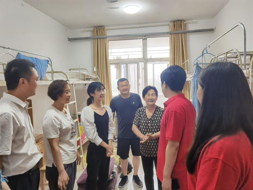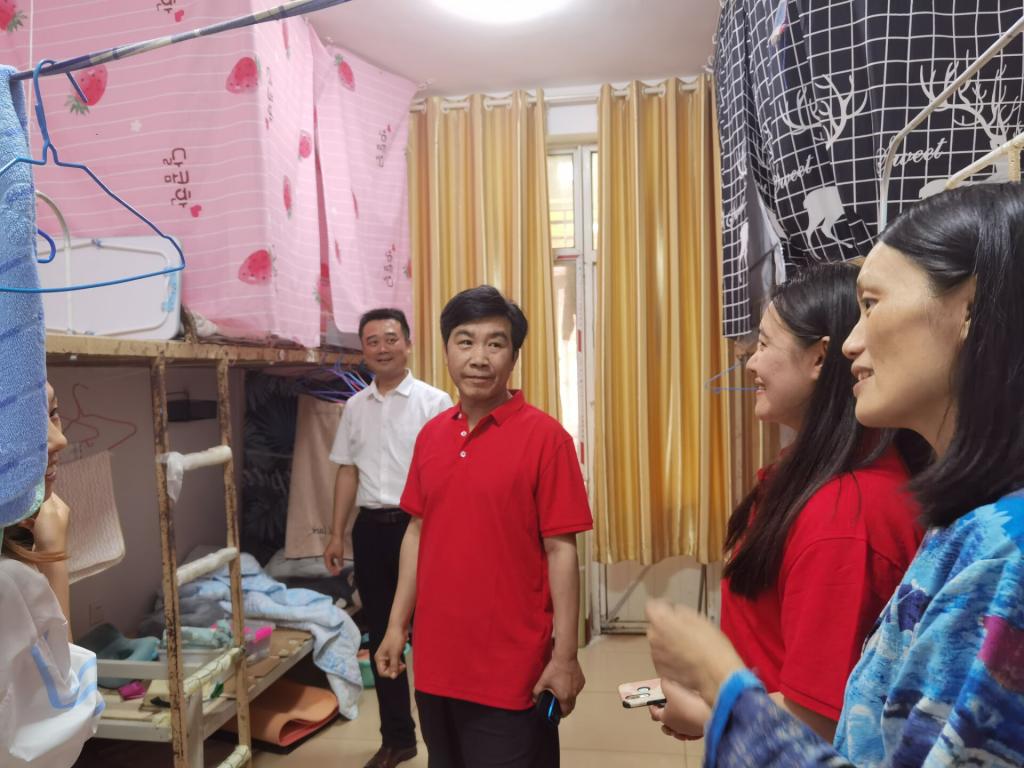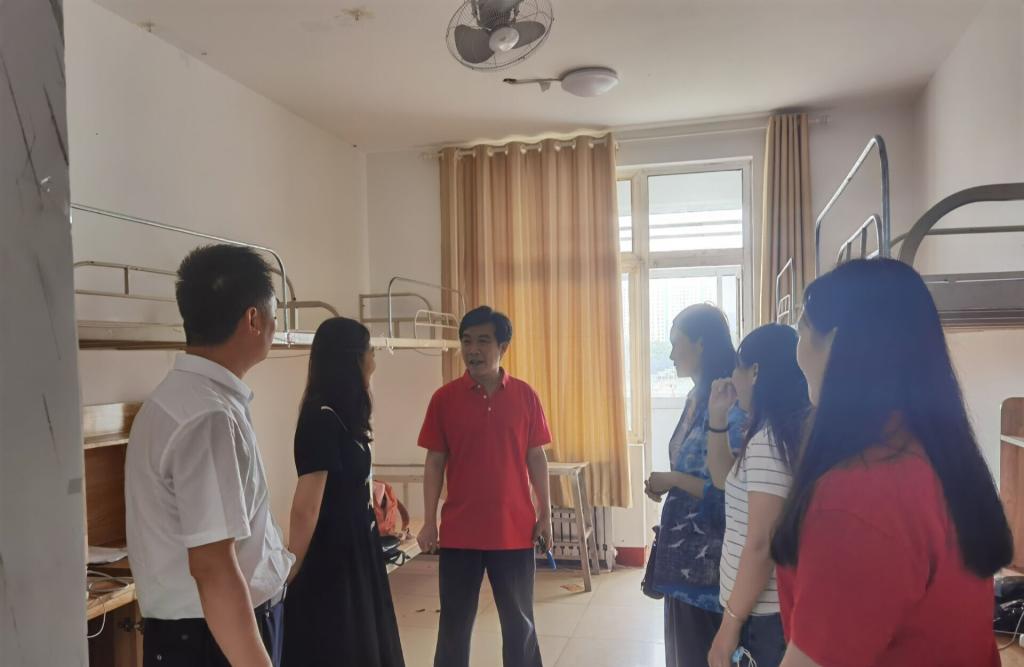 党委书记苏占兵、党委副书记刘伟、团委书记宁晓文、2017级辅导员董青走进党员模范宿舍以及其他毕业生宿舍,送别毕业生。