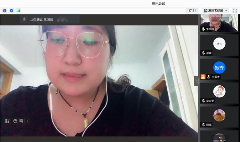 随后,张园园分享了自己观看电视剧《山海情》的心得体会:“身为学生党员,我们应该摒弃浮躁的心,勇于去基层,敢于去一线,甘于去群众需要的地方。在乡村振兴的关键时期,我们应该甘于清贫,不忘初心和使命。胸怀人民,切实为人民谋福利。”