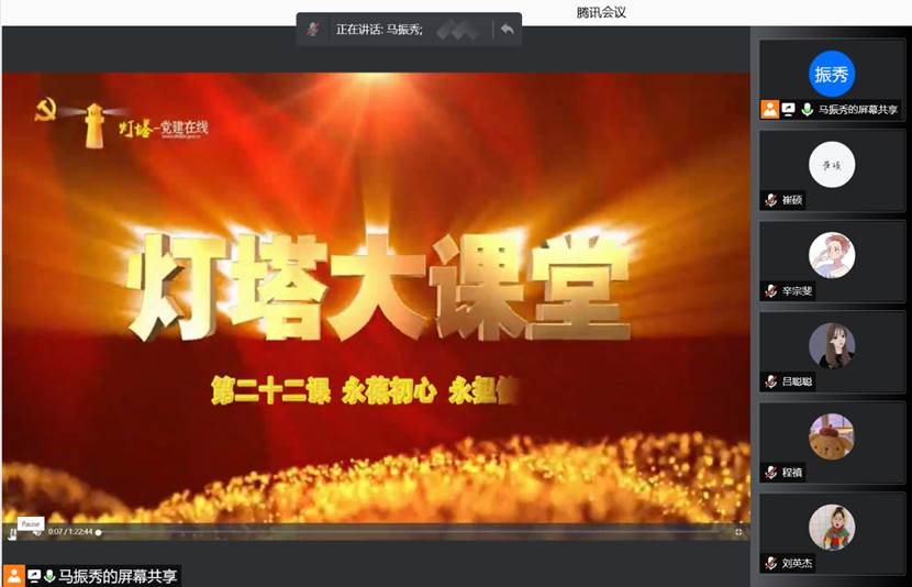 研究生党支部全体党员开展线上学习活动,共同观看学习“灯塔大课堂”第二十二课《永葆初心 永担使命》。