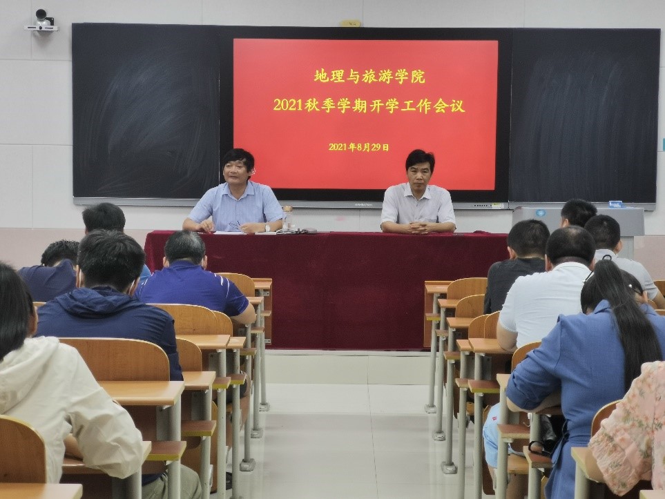 会上,张全景详细安排部署秋季学期工作。他要求,根据学校“十四五”工作要求,坚持高起点规划、高标准建设、高水平管理,完成学院“十四五”规划,做到各方面向强发展;踏实持续做好新冠肺炎疫情防控;扎实推进专业建设,做好地理学科一流专业建设,积极申报旅游专业国家一流学科和土地管理专业省一流学科;深化开展专业课程建设,组建核心专业教师团队,打造精品课程,做好教学成果奖等的申报工作;克服困难,优化形式,提升效率地完成专业野外实习实践;修订完善学院科研奖励管理办法,使科研奖励向高层次成果和课题倾斜;完善教育质量监控体系,持之以恒地加强学风建设,唱响考研主旋律,强化学生安全教育,注重意识形态引领;充分发挥实验室效率,加强实验教学队伍建设。此外,张院长还对工作纪律做了进一步强调。