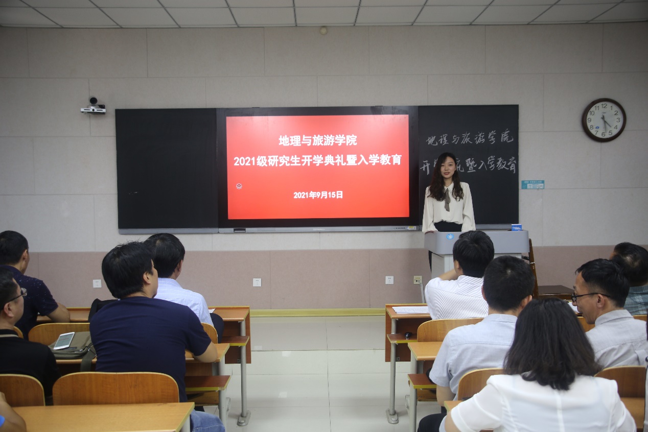 历史沿革、学科建设、教学成果、办学特色、师资力量、社会贡献等基本情况。张院长叮嘱同学们一定要围绕学院“一体两翼、三点四面”的学科发展背景,找准研究方向,树立培养工作能力、学好专业知识、塑造健康身体的三大目标。他强调,研究生要明确学习目标,培养自学意识、能力意识、创新意识、安全意识,树立科学的情感态度价值观,树立底线意识、纪律意识,爱惜学校和学院荣誉,期待同学们成长为一名优秀的地理学者、地理教育工作者。
