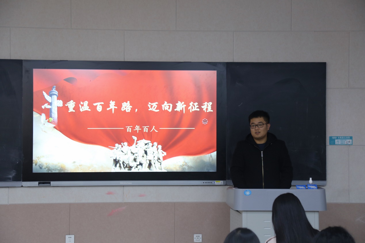 随后,支部书记马振秀同志为大家介绍了此次活动分别由“百年百人”、“百年第一”、“党史与校史”、“党员之声”四个部分组成,并鼓励大家积极参到活动中来。