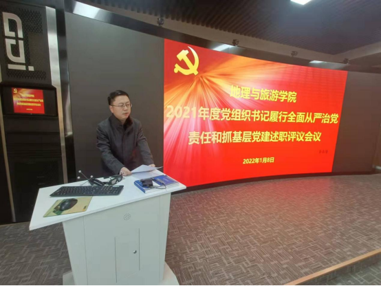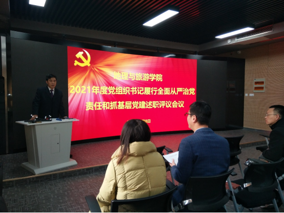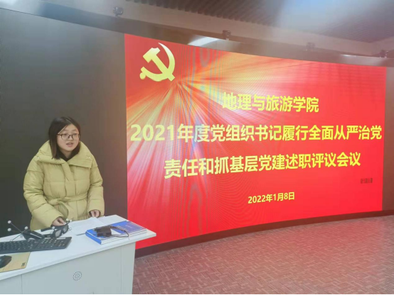 会上,教工党支部书记刘志刚,研究生党支部书记马振秀,本科生党支部书记田青分别从履职情况、存在的主要问题及原因、下步工作打算三个方面对2021年履行全面治党责任和抓基层党建进行了述职。