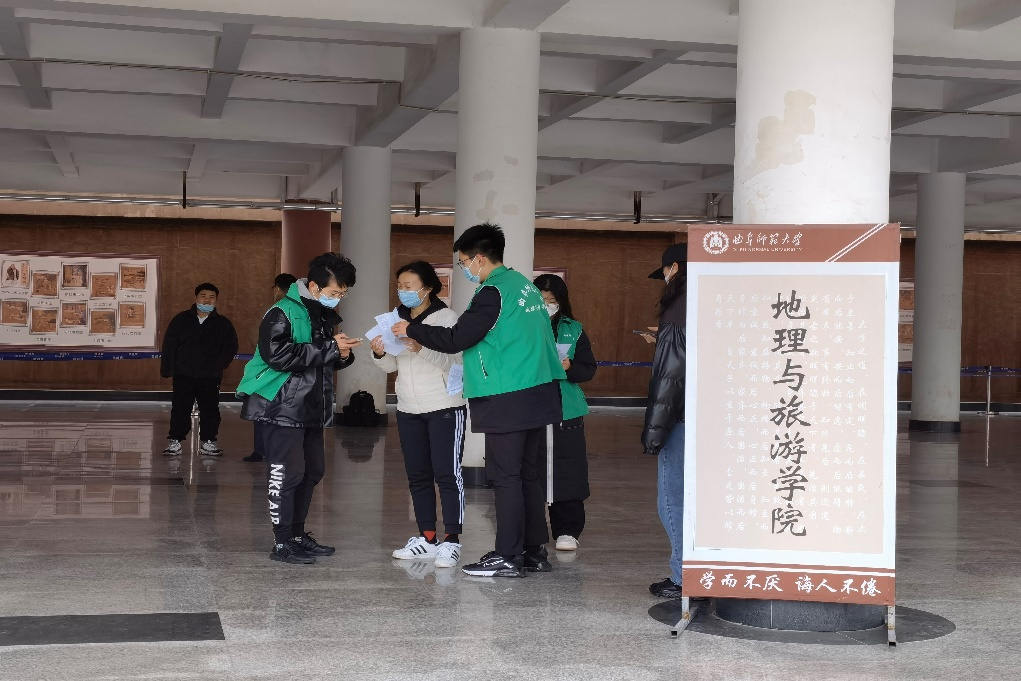疫情就是命令,秩序是顺利进行核酸检测的前提保证。在核酸检测多次进行,且参与人数较多的情况下,同学们仍能够井然有序,自觉在检测地点排队进行核酸检测,充分体现了作为一名地理学子时刻保持的自觉意识和大局意识。