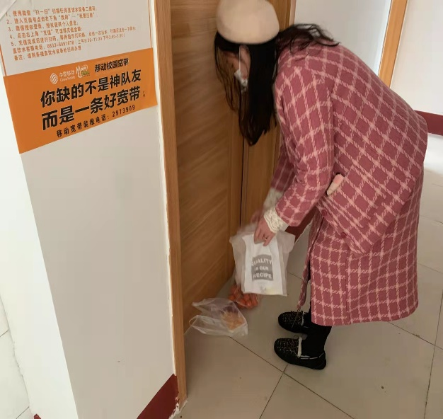 孕期的辅导员董青老师给隔离留观同学送食品水果