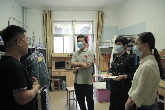 为进一步了解学生返校后状态,激励同学们以更积极的精神面貌投入到校园学习和生活中。8月28日下午,学院党委书记苏占兵、副院长于伟、研究生辅导员赵岩、研究生教学秘书朱丽走访学生宿舍,了解学生返校情况,关怀学生的住宿安全、人身安全,并进一步落实学生安全管理工作。