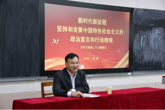 12月4日,党委常委、副校长陈刚以《坚持和发展中国特色社会主义的政治宣言和行动纲领》为题,为麻豆在线