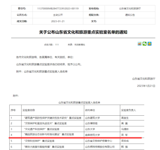 近日,山东省文化和旅游厅公布山东省文化和旅游重点实验室名单,麻豆在线