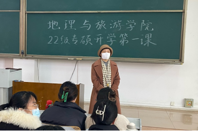于A206教室召开2022级专硕研究生开学第一课主题班会,研究生辅导员赵岩老师出席会议并发表讲话。