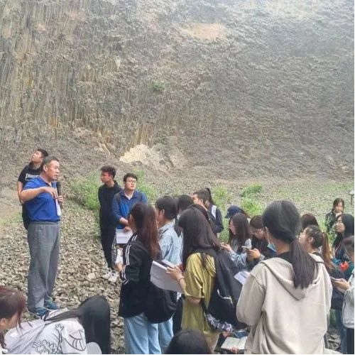 在昌乐火山地质公园,谢小平、马振华、赵爽、刘飞四位老师围绕不同地层中的玄武岩岩性构造上的差异进行了系统讲解,引导同学们将所学知识与实践相结合,加强对地理科学专业的认知,提高综合运用知识的能力。