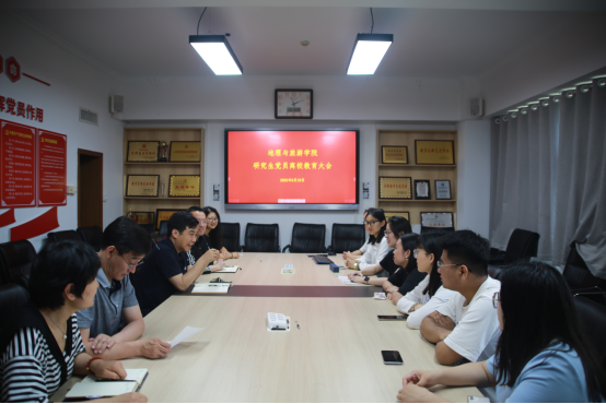 在会馆2401组织召开了2023届毕业生(研究生)党员离校教育大会,党委书记苏占兵主持,学院院长张全景、学院副院长吴军、于伟出席,辅导员赵岩以及全体研究生毕业党员参加。