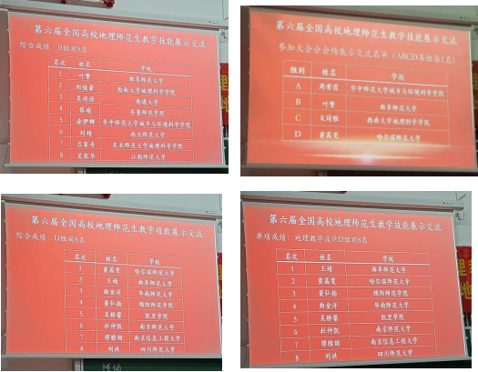 本次教学技能展示交流活动共有71名来自不同高校的选手参加。所有选手共分为四组进行展示,通过现场抽题的形式,抽取高中地理必修和选必修的相关课题,选手在90分钟内完成教学设计和课件制作,然后进行15分钟的现场授课和答辩。这既考验了选手对课本知识内容的掌握,也充分体现了师范生的地理综合素质。
