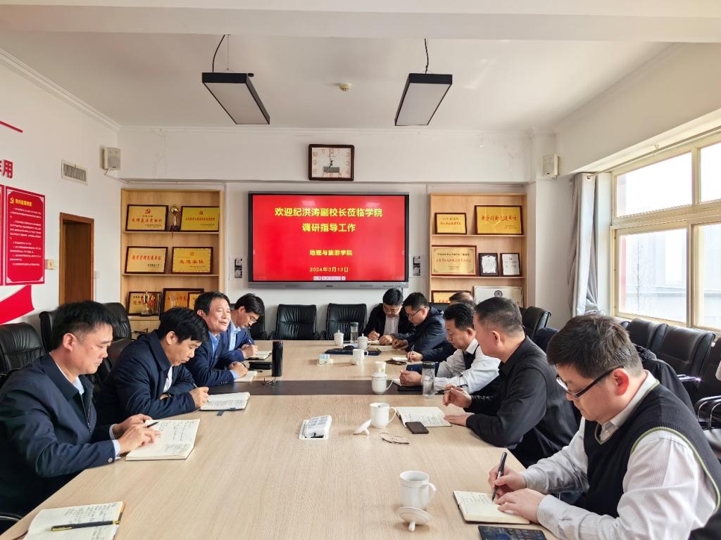 苏占兵、张全景向纪洪涛副校长汇报了学院在校友、服务地方等方面的工作情况,并围绕学院党团组织建设、学科建设、师资队伍建设、教学工作等方面汇报了下一步工作计划。
