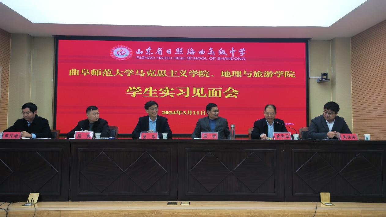 莒县一中校长许慎德、地理学科主任滕全贵、教科研主任李成栋欢迎实习学生