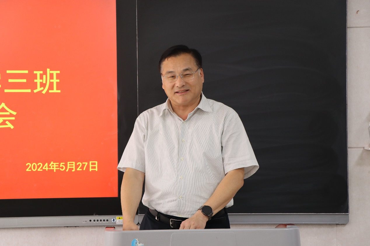 党委副书记刘伟主持,党委书记苏占兵、班主任张琦博士、团委书记李梅、2022级辅导员陈鑫及全班同学参加。