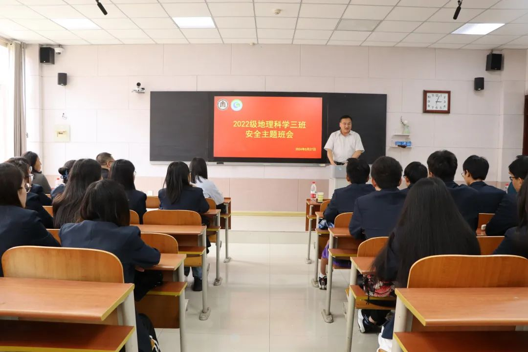 2022级地理科学三班,参加2022级地理科学三班安全主题班会,并与同学们就学习生活等各方面问题展开交流。本次活动由麻豆在线