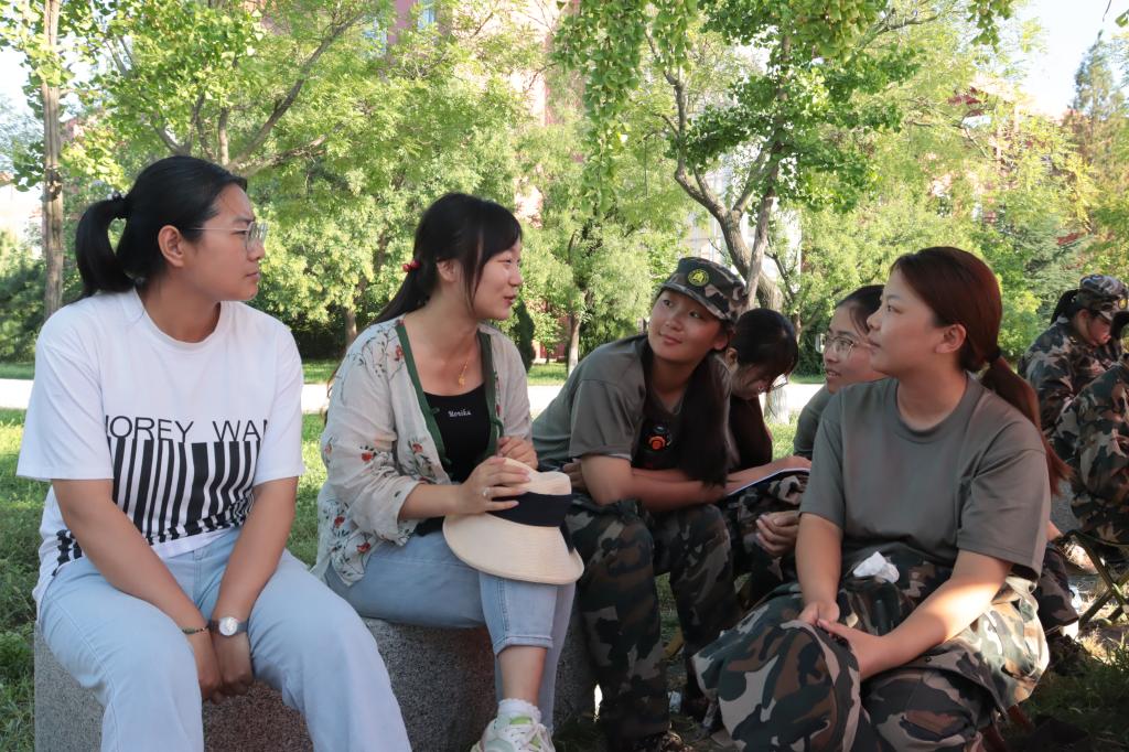 辅导员张乃宁、公惟莹与同学们深入交流,了解军训情况