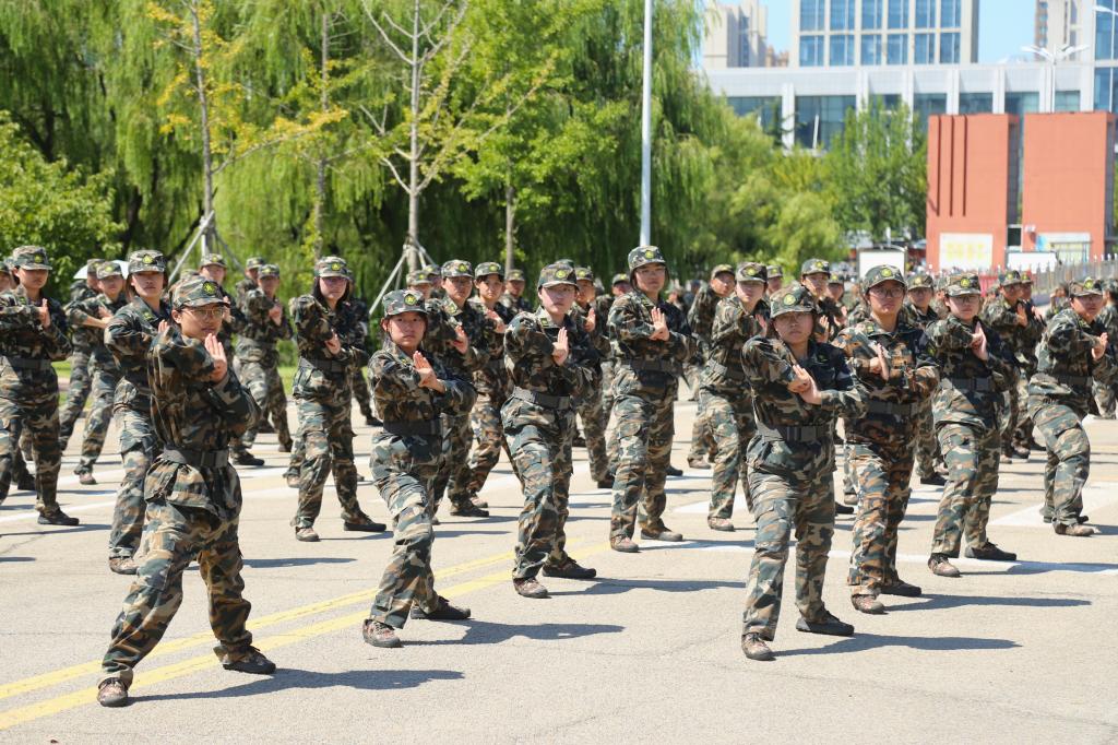教官为同学们纠正摆臂动作