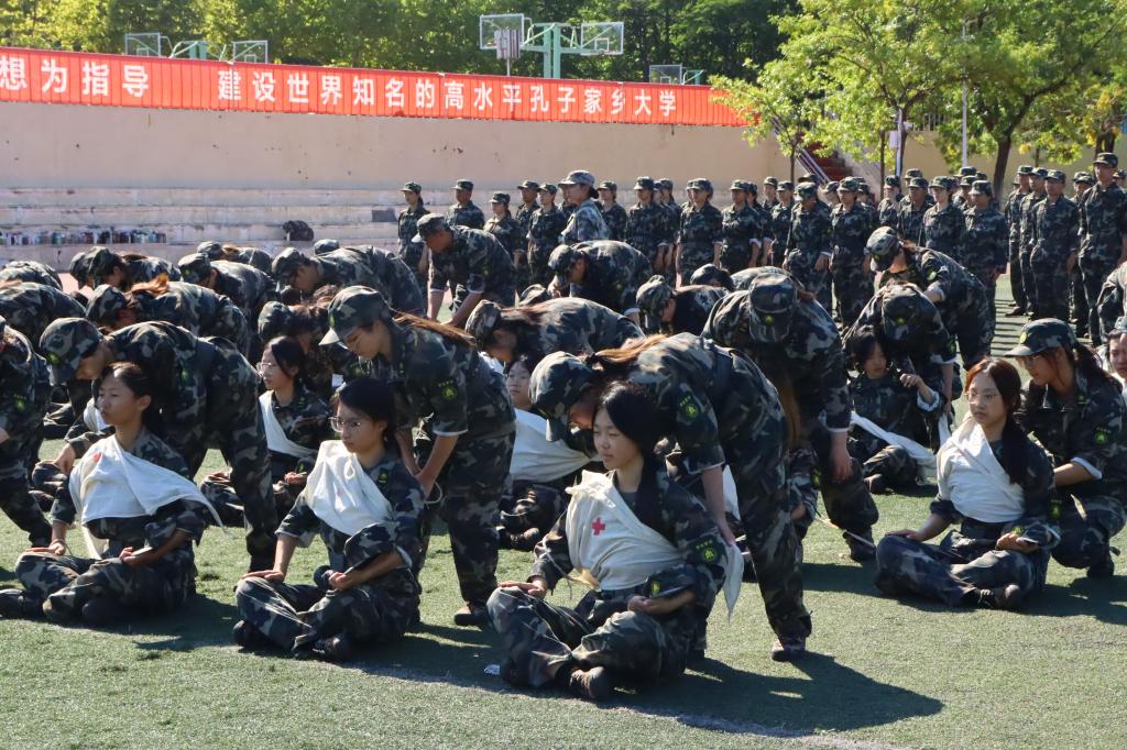 教官帮助同学整理着装