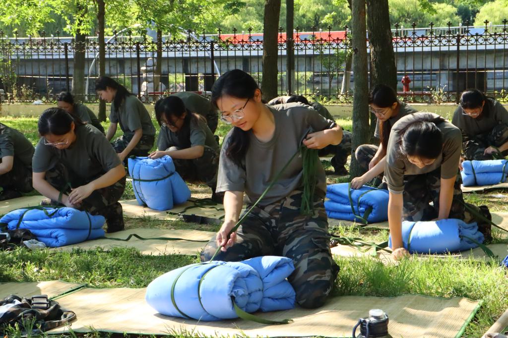 同学们进行内务整理的练习