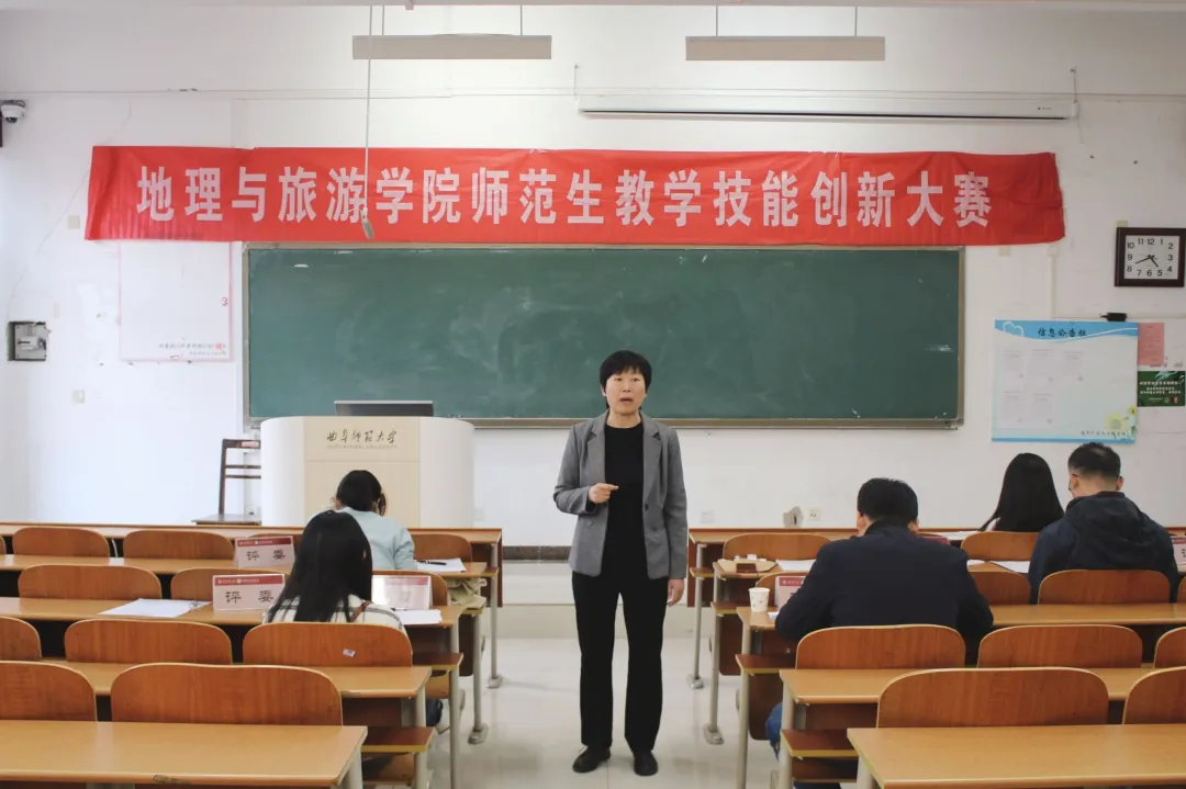 比赛项目分为10分钟模拟授课与现场5分钟答辩两个环节,综合考察选手的教学设计、课堂掌握度及临场发挥能力。模拟授课中,参赛者巧妙运用板书绘图、小组互动讨论等多元化教学手段,将热点元素与山河地貌的学科知识有机融合,打造出趣味性与专业性兼备的课堂。答辩环节,选手们从容应对随机抽取的教学情境题,结合教育理念与自身的实习经验,深入剖析学科核心素养的落实方法,展现出扎实的专业功底与创新的教学思维。