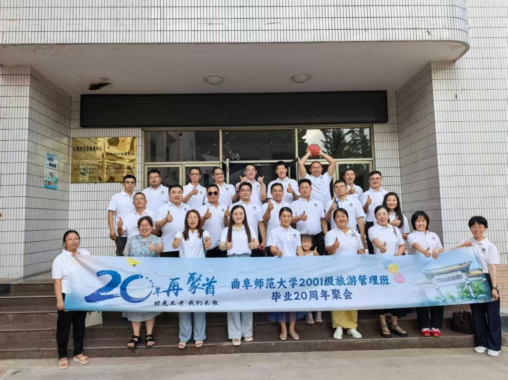 2001级首届旅游管理专业30余名校友从五湖四海重返母校,共赴毕业二十周年之约。本次聚会以“廿载同窗情,再聚阙里缘”为主题,通过师生座谈、校园重游等活动重温青春记忆,共叙师生情谊,见证母校发展。