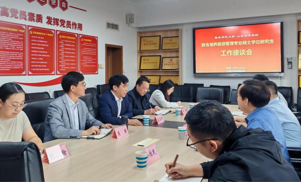 10月15日上午,山东女子学院旅游学院鲁春晓院长率队到访学院,就开展联合培养旅游管理专业硕士学位研究生工作座谈会, 随行的有山东女子学院数据科学与计算机学院张明书记、旅游学院王晓伟副院长、旅游学院公维民博士。院党委书记苏占兵、副院长吴军、于伟出席座谈会,旅游学系主任张瑜、MTA导师代表李梦程参加了座谈会。