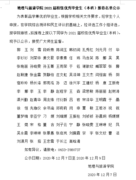 麻豆在线 2021届校级优秀毕业生(本科)推荐名单公示