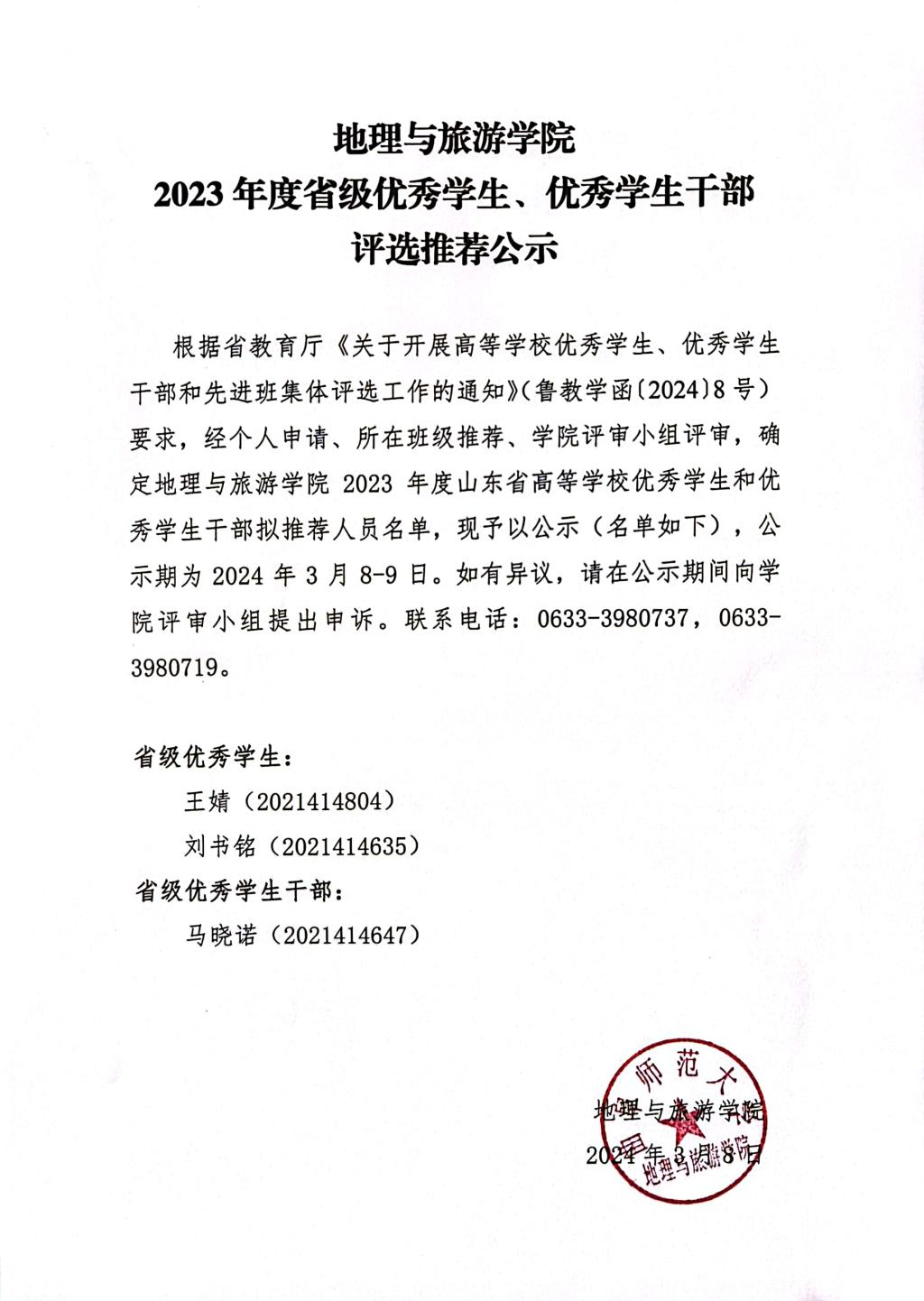 麻豆在线 2023年度省级优秀学生、优秀学生干部评选推荐公示