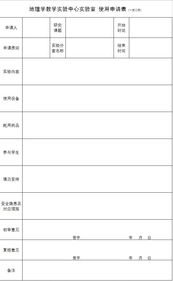 地理学教学实验中心实验室使用申请表
