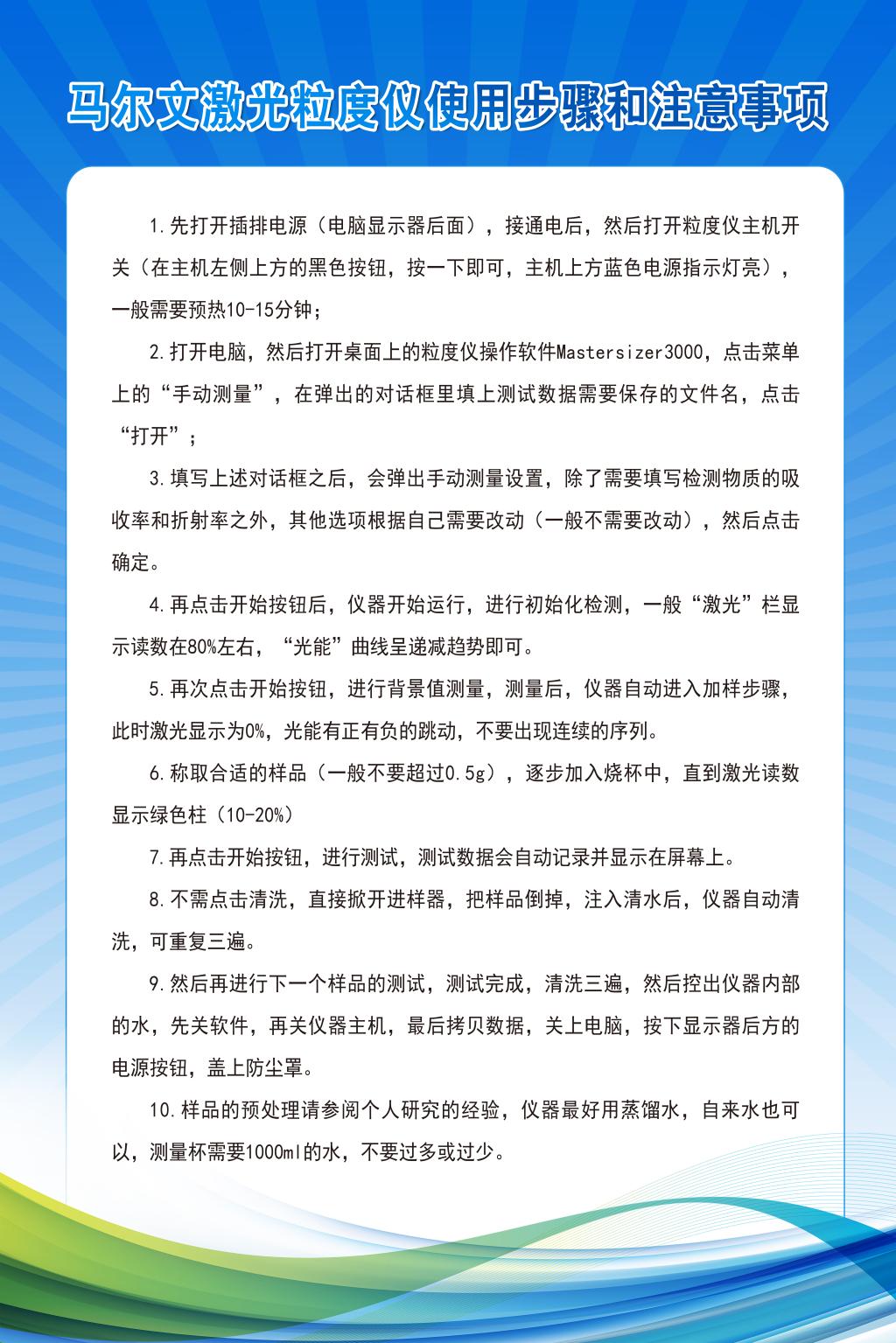 马尔文激光粒度仪使用步骤和注意事项