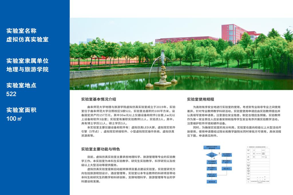 虚拟仿真实验室是新旧动能转换项目重点建设实验室,实验室研究方向包括旅游规划设计、酒店管理等,实验室以本专业教师的科研项目带动本科生和研究生的教学和科研创新,支撑地理科学、旅游管理等专业的学科建设和发展。